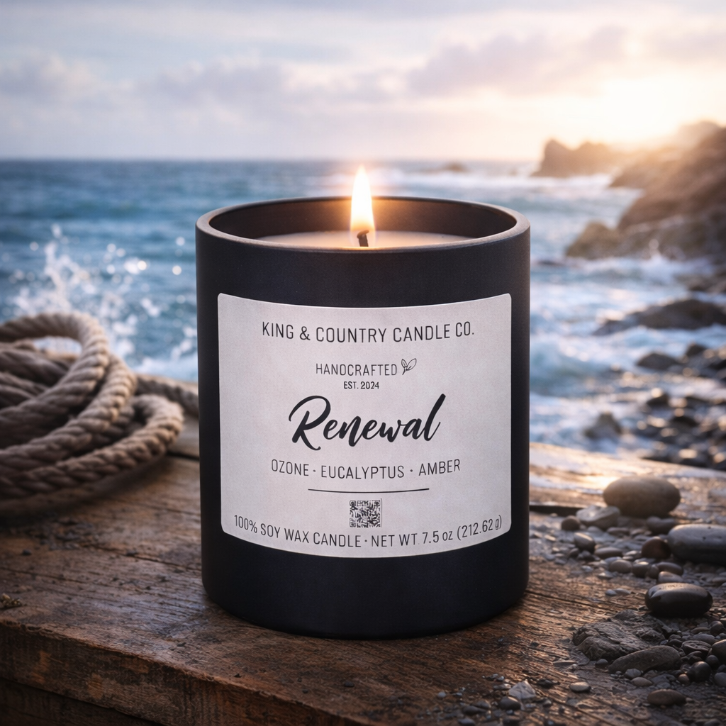 Inspired by Romans 12:2, Renewal invites moments of rest, reflection, and faith renewed. Handcrafted with 100% soy wax, this men’s faith based candle resonates with customers seeking meaningful gifts, faith-based products, and clean, modern masculine home fragrance.