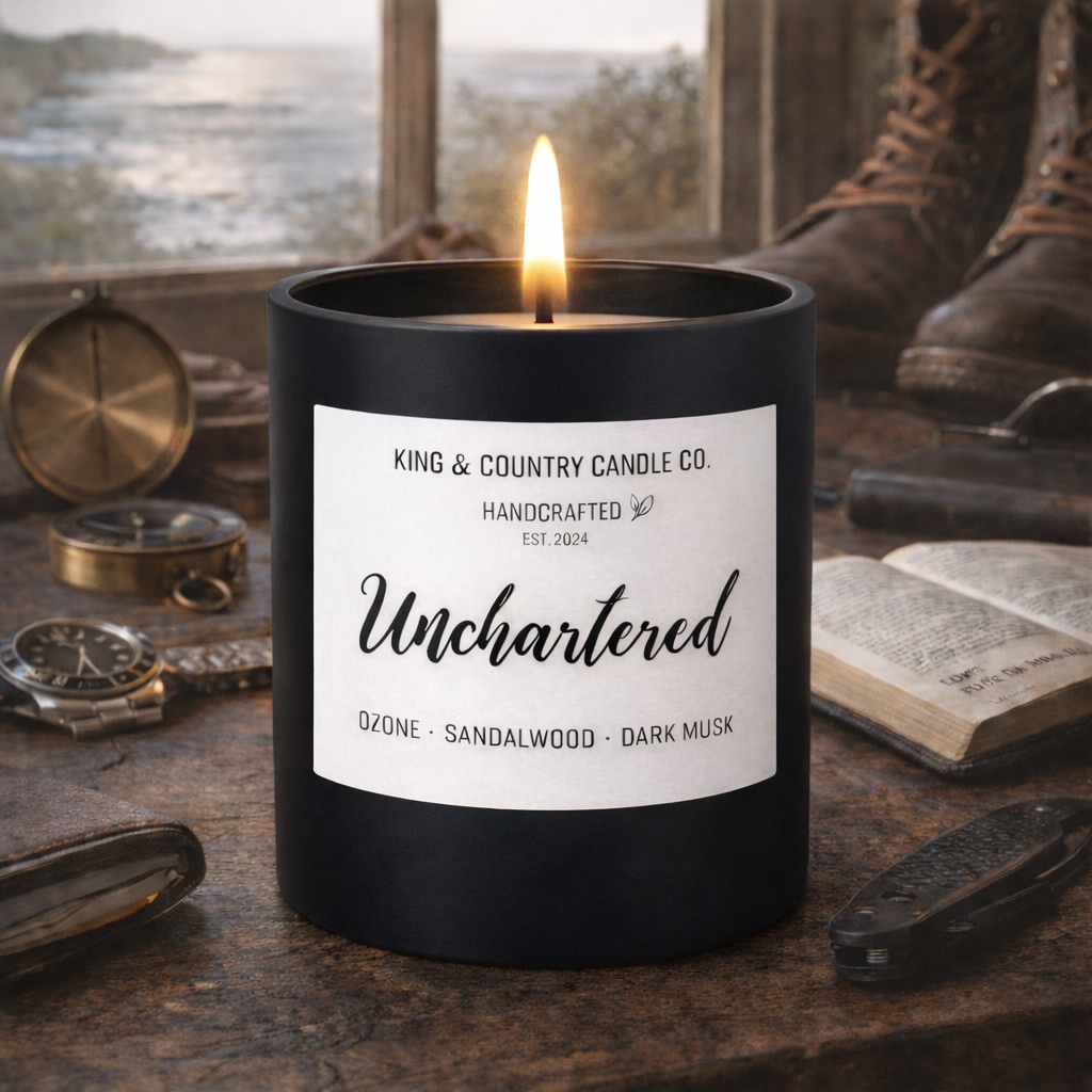 Amber, sea salt, and dark musk drift together in this bold, airy, mysterious, intriging scent. Uncharted calls you to step beyond the familiar — to trust where God is leading, even when the path disappears beneath the waves.